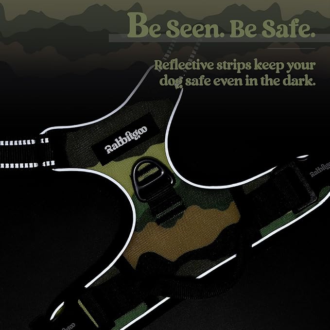 rabbitgoo Dog Harness No Pull with 2 Leash Clips, Adjustable Soft Padded, Reflective Oxford No Choke Pet Vest with Easy Control Handle for Large Dogs, Green Mountain,S