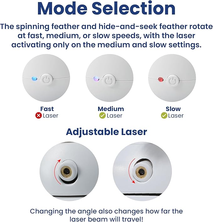 - There are 3 speed modes to choose from based on your four-legged family member’s energy level.