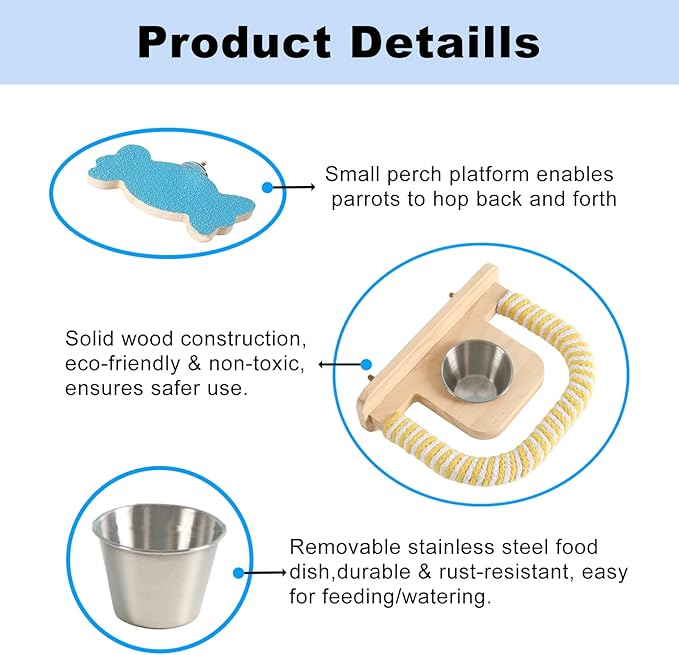 - Fun interactive platform: Comes with a small standing platform to stimulate birds' natural jumping and playing, increase activity fun, and promote physical health.