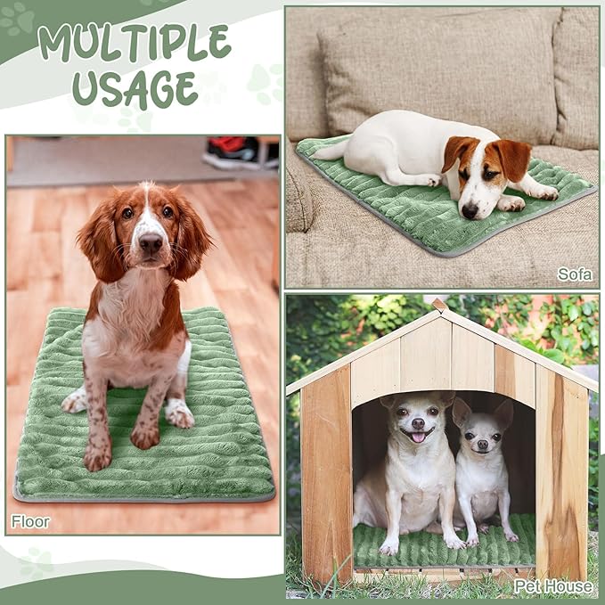 Nuanchu 4 Pack Self Warming Cat Bed 24 x18 Self Heating Dog Cat Pad Bulk Crate Mat Extra Warm Thermal Big Pet Pad for Indoor Outdoor Pets Houses with Removable Washable Cover Non Slip(Light Green)