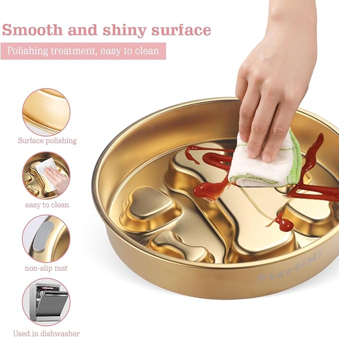 • ✅ 【Dishwasher Safe & Easy to Clean】 The smooth stainless steel pet bowl is dishwasher-safe and resists stains, making it ideal for dog dishes for small dogs or cat food dishes. A hassle-free dog food tray or cat food plate that stays fresh meal after meal! Ideal For: Fast-eating dogs/cats, large breed dog bowls, small dog food bowls, or pet owners seeking stainless steel slow feeder dog bowls that combine fun and function!