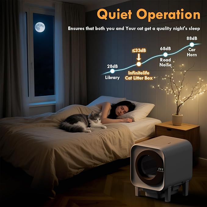 - 🔇 Quiet & Easy Maintenance: Works as quiet as 33dB—day or night, it won’t disturb the household. One-tlick litter replacement improves efficiency by 80% with no manual pouring needed. Comes 80% pre-assembled for unbox-and-use convenience. Removable, washable modules make cleaning quick and effortless, ideal for busy cat owners