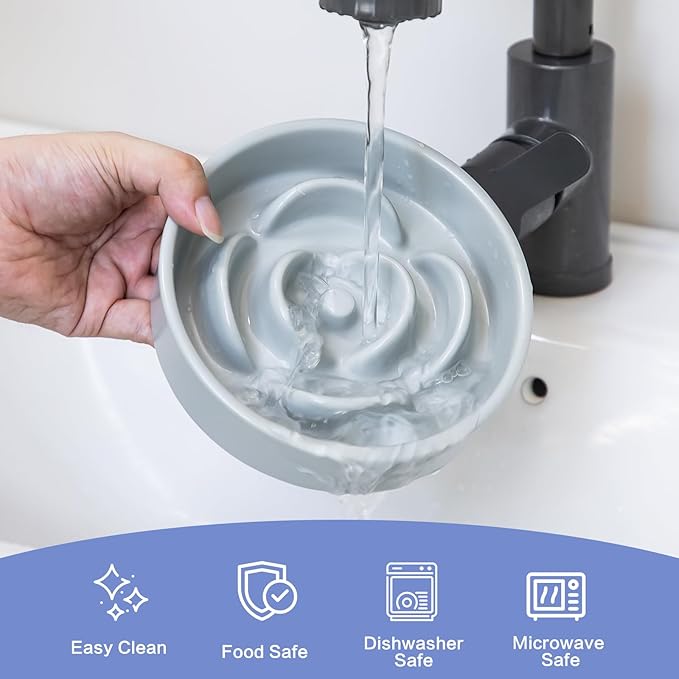 - Heavyweight & Non-Slip Base: This ceramic slow feeder dog bowl measures 6"W * 1.77"H" and can hold up to 11oz ≈ 340ml and weighs up to 0.7kg (about 1.54 lbs), suitable for different breeds of cats and small dogs. Stays firmly in place, preventing spills and messes, even with enthusiastic eaters.