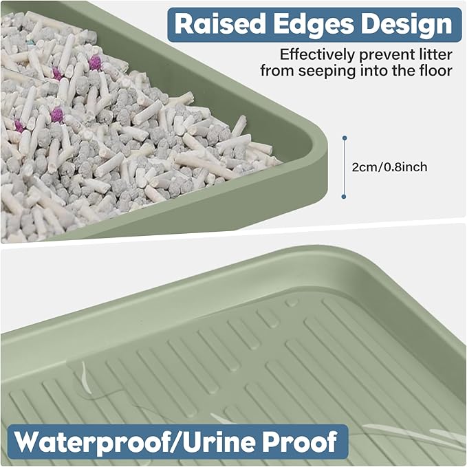 - 【Urine-Proof & Waterproof Design】Keep your floors clean and dry with our silicone cat litter trapping mat! Featuring a raised edge to effectively trap loose litter and securely block water spills or urine leaks, while the waterproof design to prevent liquids and odors from soaking through, protecting your floors and maintaining a clean, odor-free home.