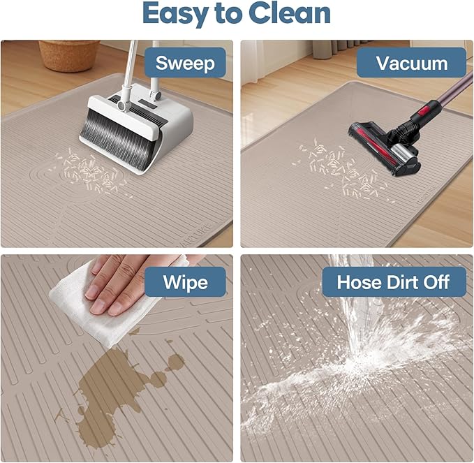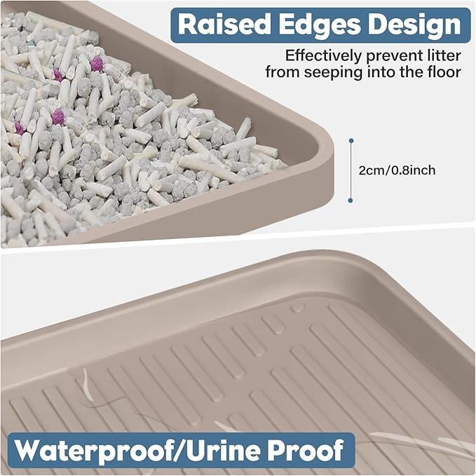 - 【Urine-Proof & Waterproof Design】Keep your floors clean and dry with our silicone cat litter trapping mat! Featuring a raised edge to effectively trap loose litter and securely block water spills or urine leaks, while the waterproof design to prevent liquids and odors from soaking through, protecting your floors and maintaining a clean, odor-free home.