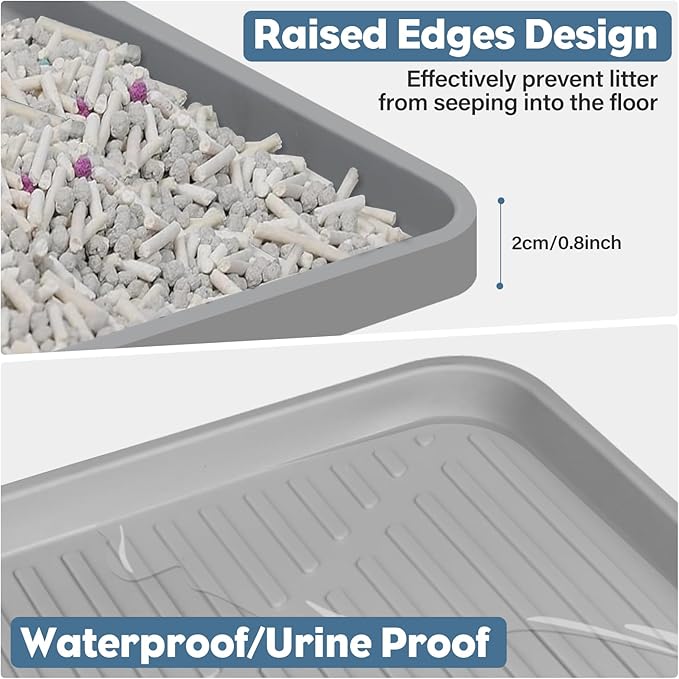 - 【Urine-Proof & Waterproof Design】Keep your floors clean and dry with our silicone cat litter trapping mat! Featuring a raised edge to effectively trap loose litter and securely block water spills or urine leaks, while the waterproof design to prevent liquids and odors from soaking through, protecting your floors and maintaining a clean, odor-free home.