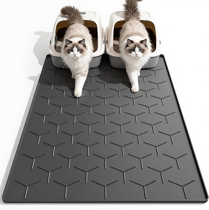 Cat Mat for Litter Box, Large 40" X 28" Cat Litter Mat XL, Waterproof Silicone Pad for Floor, Black