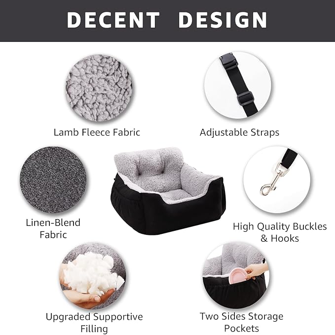 - [SAFETY & SECURITY]: Your pet's safety comes first. Adjustable straps with sturdy buckles and snap-hooks (hold up to 100 lbs) secure the seat, preventing escapes or forward movement during sudden stops.