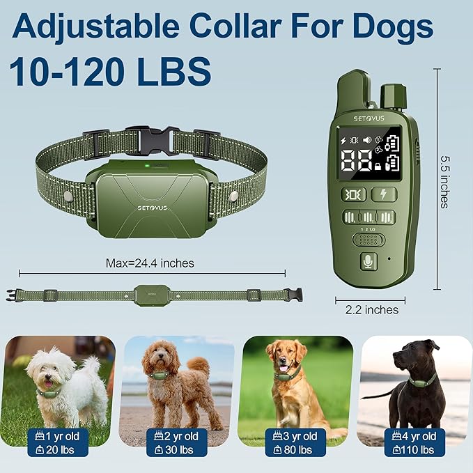 - 【Two way audio call】- S-ETOVUS dog electric shock collar innovative remote voice training function, and one remote control supports two dog training collars, so you can contact and train two dogs remotely at any time!