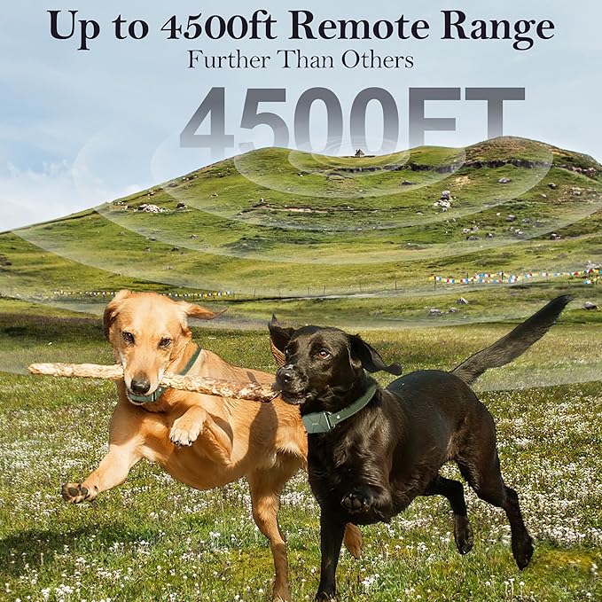 - 【Further Range】 - The anti barking collar with remote control can cover 4500 feet in open areas, allowing you to easily recall your dog remotely