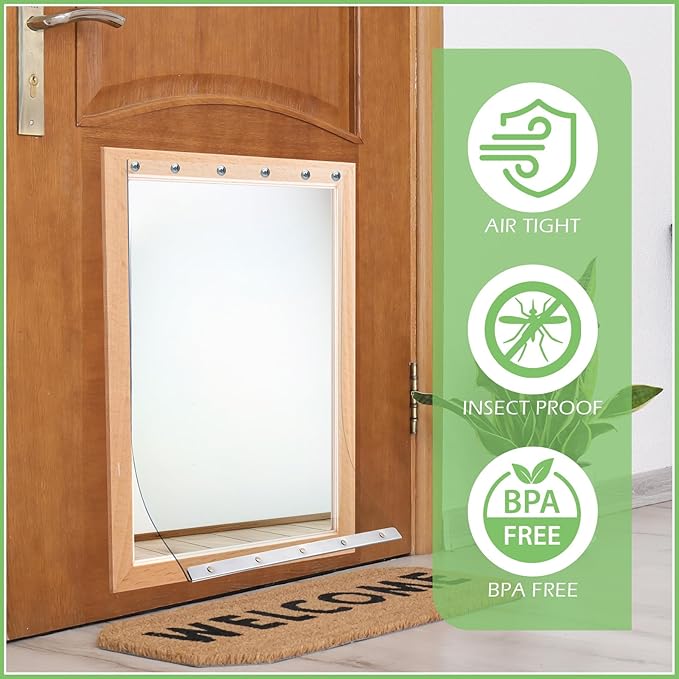 - Quality Material: made out of resilient, weather resistant, and flexible PVC material, this doggy door flap stands up to daily use, withstands daily wear and tear, whether your pet goes outside frequently or occasionally; Its durability is better than plastic alternatives, providing a long lasting solution for your dog's independent access to the outdoors