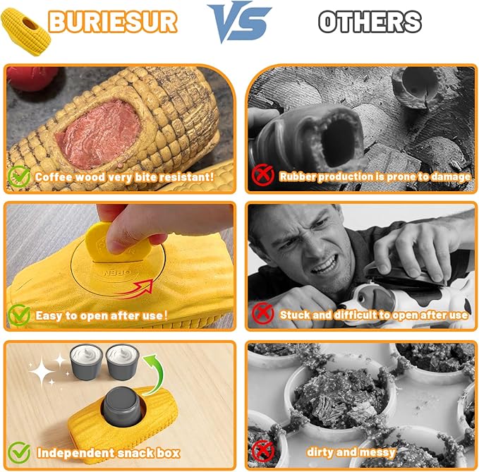 - Unique corn shape:Dog toys for aggressive chewers attracts puppy to chew. Dog chew toys made of high grade nylon and natural coffee wood fiber, with size of 5.75 * 3.11 * 2.91 inches,frozen dog toys surface texture on the surface can give dogs teeth grinding.Interactive dog toys flat base allows dogs to steadily press and lick, mimicking wild foraging, perfect for playing at home and in the park or dog teeth cleaning.