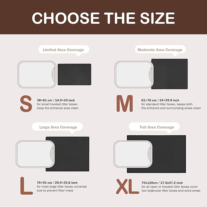 - Waterproof & Urine Proof Mat: The bottom of large litter mat is made of EVA material, which can prevent liquid from seeping through, keeping your floors dry and protected. No need to worry about urine stains on wood floors or carpets.