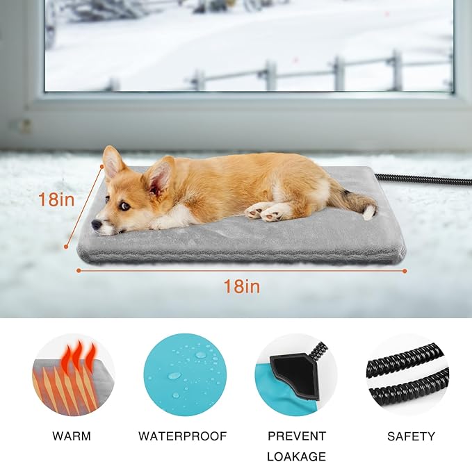 Dog Heating Pad Outdoor for Heated Dog Bed, Pet Heating Pad with Soft Cover,Chew Resistant Cord, Safe for Pregnant New Born Stray Feral Puppy Grey 18 * 18