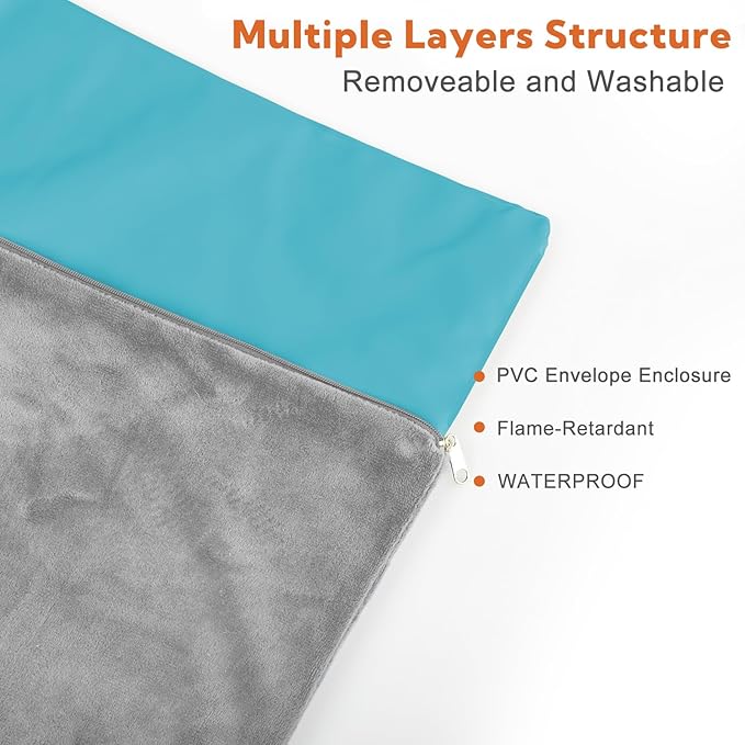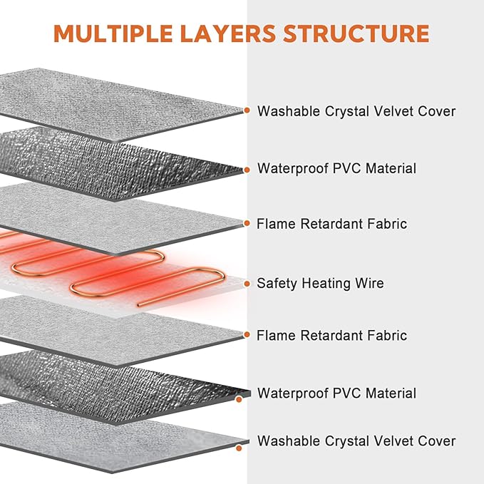- SAFETY AND DEPENDABLE STRUCTURE: Multi-layer protective design and UL-certified heating wire to keep your pet safe from burns. Flame Retardant Fabric and waterproof PVC shell for added security. Built-in overheat sensor prevents the warming pad from getting too hot. And the heating pad for puppies also uses a 69 inches extra-long cord with a steel-encased chew guard to ensure your pet's safety always