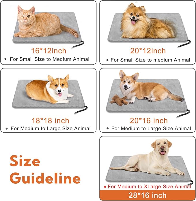 - COZY AND WARM FOR YOUR FURRY FRIEND:Yicostar heating pads for dogs and cats not only keep pets warm and comfortable on cold days, but also help to relieve joint and muscle pain in older pets, ensuring they stay warm and comfortable on cold days and sleep sweetly. Available in 5 different sizes, these cat warming pad are suitable for dogs of all sizes, cats, kittens, rabbits and other pets, fits most pet beds