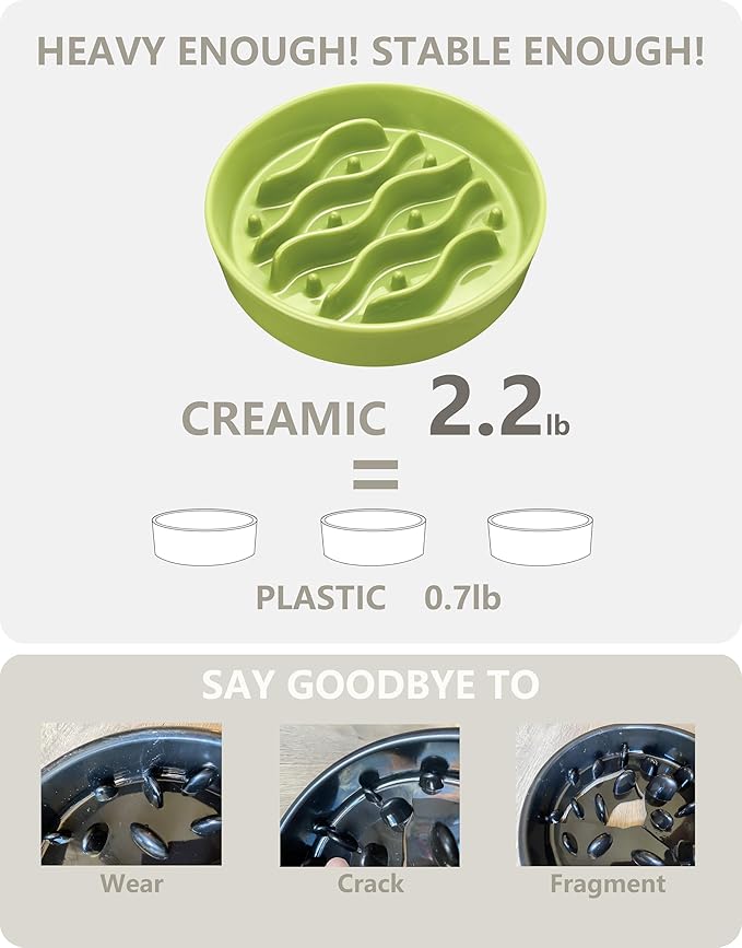 Ceramic Slow Feeder Dog Bowls for Medium and Large Dogs, 2.0 Cups Dog Slow Feeder for Fast Eater, 30oz, 8in, Lime Green