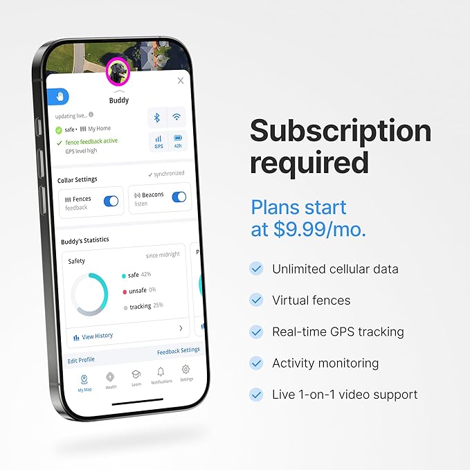 - SUBSCRIPTION REQUIRED: Your collar requires GPS services & cellular data to create, edit, & use the GPS dog fence. Pack Membership Plans start at $9.99 per month. Select a plan after purchase