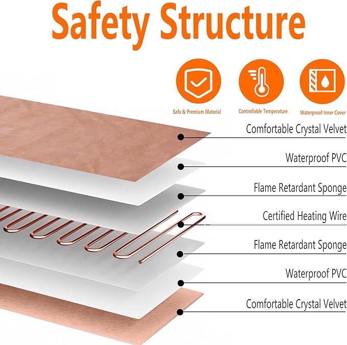 - Waterproof & Chew-Resistant Safety:The cat dog heating pad design with waterproof PVC inner layer and chew-resistant cord protection to ensure safety.