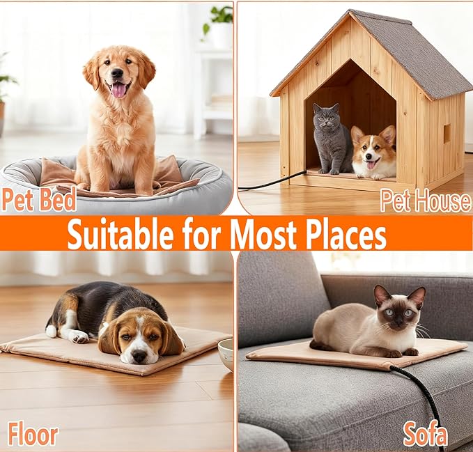 - Care for Pets:The pet heating pad is not only fits most pet beds,house,crates, or favorite lounging spots,but also can provide warmth for elderly,newborns and pregnant pets & relieve joint pain.