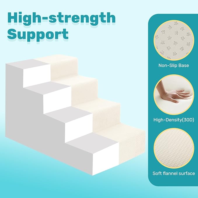 Dog Stairs for Bed, Extra Wide 4-Step Dog Steps for High Bed, High-Density Foam Pet Stairs with Non-Slip Removable Washable Cover for Small Pets, 18" H, Beige