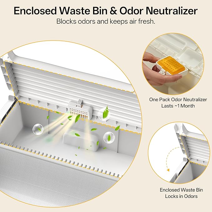 - 🛡️ EVERYTHING YOU NEED, BACKED BY SUPPORT: Your purchase includes everything to get started: 20 custom-fit waste bags and 3 deodorizer blocks. Rest easy with our 1-year warranty and 24/7 customer support from our dedicated team, ensuring a hassle-free experience for you and your cat.