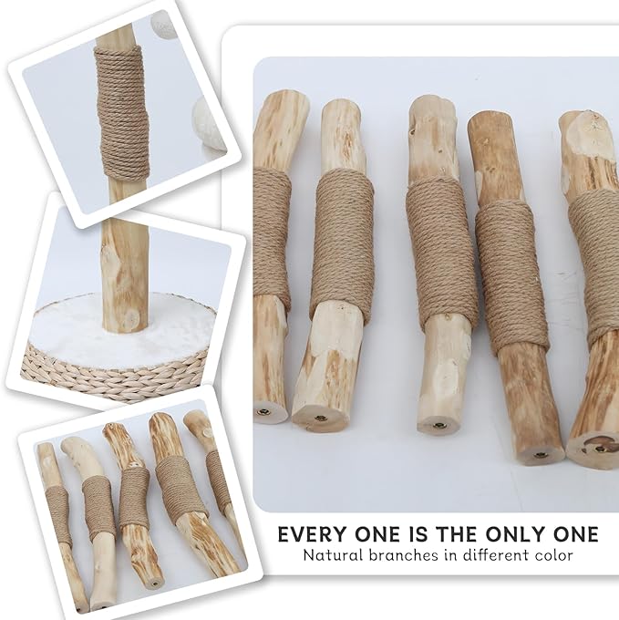 - 【Handmade from All-Natural Materials】Unlike mass-produced particle board towers, this cat tree tower is crafted from authentic, selected tree branches and wrapped in natural sisal rope. This commitment to quality materials ensures exceptional durability and provides a texture cats instinctively love. The result is a piece of cat furniture that is not only built to last but is also a safe and appealing environment for your pet