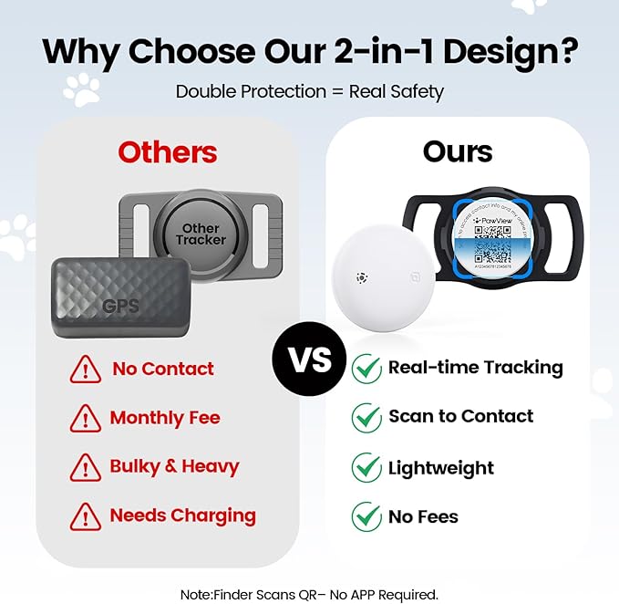 - Emergency Contact: Our tags keep your pet safer than regular trackers. If the tracker loses signal or the battery dies, your pet is still protected. Anyone can scan the built-in QR ID tag and reach you right away, no app needed. You’ll get a location alert as soon as your pet is found. This helps you bring your best friend home faster