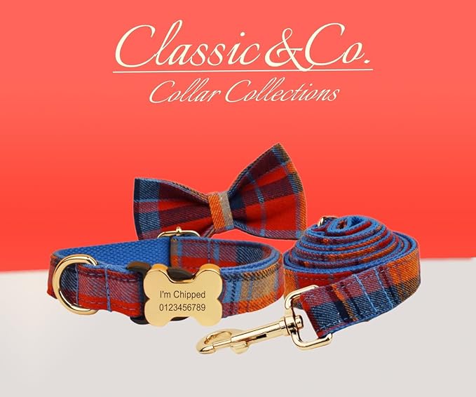 Personalized Dog Collar with Bone Buckle โ Custom Name & Phone Number Engraved, Adjustable Quick Release for Small to Large Dogs (Plaid Tartan)