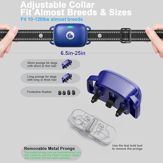 - Compact Comfort: Made of skin-friendly and comfortable Designed for minimal neck burden, adjustable strap ,aikko dog electric shock collar offers comfort with a waterproof receiver for outdoor training. The soft collar fits dogs 5-120 lbs with neck sizes 7-26 inches.Remote is not waterproof.
