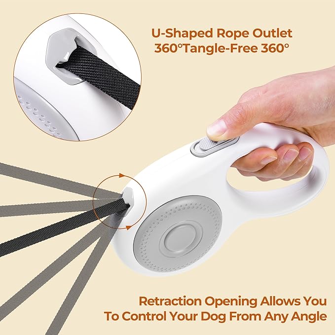 - 16ft Extra-Long & Smooth Retraction: Equipped with a 16ft/5m high-tensile nylon tape that retracts automatically without tangles. Let your dog explore freely in parks or yards, and lock the length instantly with one click to keep them close in busy areas (e.g., near roads or park or garden).