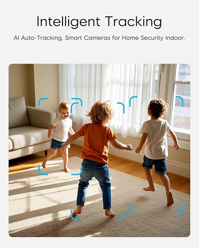- 【Complete 360° Coverage】--- Zero Blind Spot Assurance: This indoor wireless security camera rotates 360° with auto pan/tilt, eliminating coverage gaps. it tracks motion across entire rooms with seamless indoor security cameras performance.
