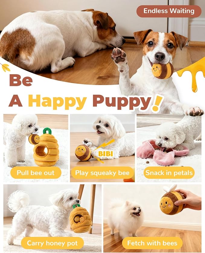 - Interactive Beehive with Hidden Fun: Unique bee hive design, perfect for dogs to hide or carry around, catering to their natural instincts and providing more fun playtime.