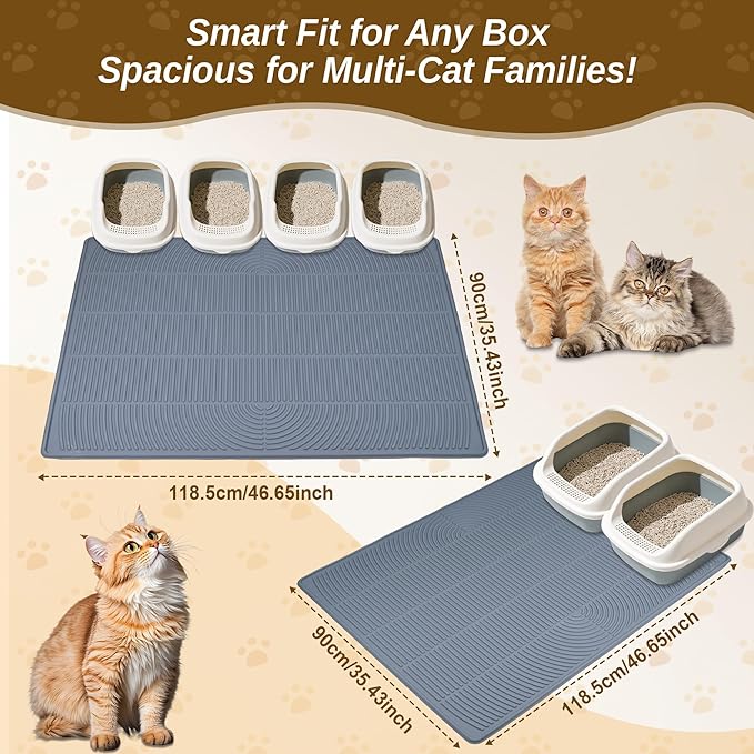 - Our massive Extra Large Cat Litter Mat XL provides a generous 47" x 35" of floor coverage, creating a spacious clean zone for any litter box style (covered, hooded, or standard). Ideal for single-cat homes or multi-cat households needing maximum floor protection.
