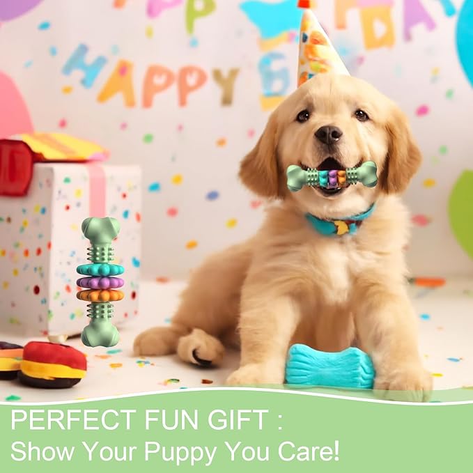 Puppy Chew Toys for Teething, Indestructible Dog Chew Toys for Aggressive Chewers - Small & Medium Breeds, Tough Rubber Bone Puppy Toys to Keep Them Busy & Relieve Anxiety