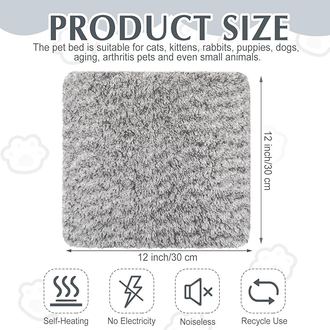 - Proper Size: you will receive 4 pack self heating cat pads in gray, each size is about 11.81 x 11.81 inches/ 30 x 30 cm, ideal for kittens, cats, puppies, dogs, aging and arthritic pets, can be applied on sofas, floors, pet beds, cat perches, pet carriers and outdoor cat houses; The cat warming pads are also ideal gifts for your friends who have pet