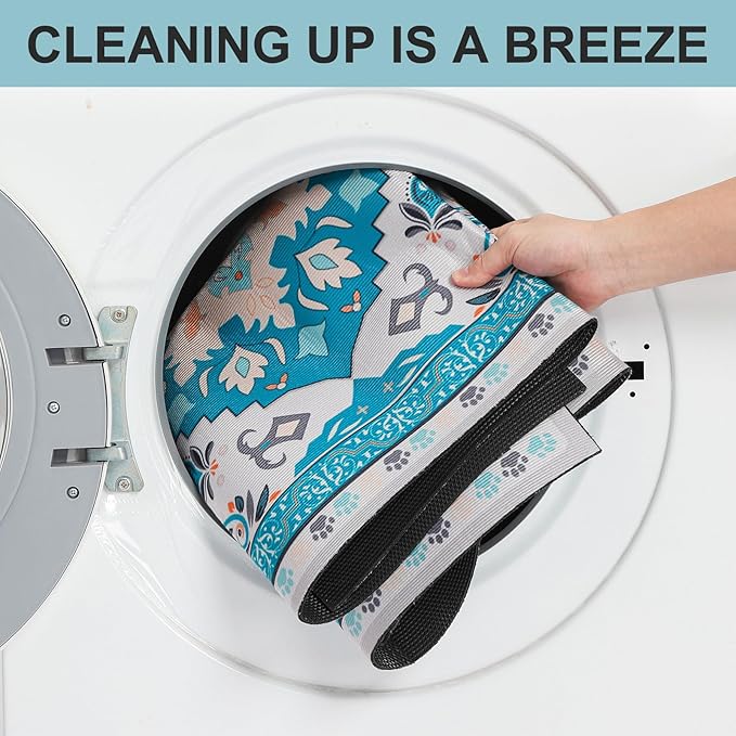 - TRAPS LITTER & MAKES CLEANING A BREEZE: No more tracking litter around your home! The advanced fabric traps powdered litter and prevents it from spreading across your floor, while the soft surface absorbs moisture to keep everything dry. MACHINE WASHABLE. The cat mat for litter box can be easily vacuumed, swept, or rinsed. Dirt can be cleaned super easily, saving you time and effort, no fading or deformation after repeated use