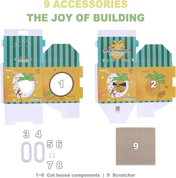 - 2-IN-1 CAT HOUSE & SCRATCHER: This pineapple milk carton–themed cardboard cat house is both a fun hideaway and a durable scratching pad. It gives your cat a cozy space to rest while encouraging healthy scratching behavior that helps protect your furniture