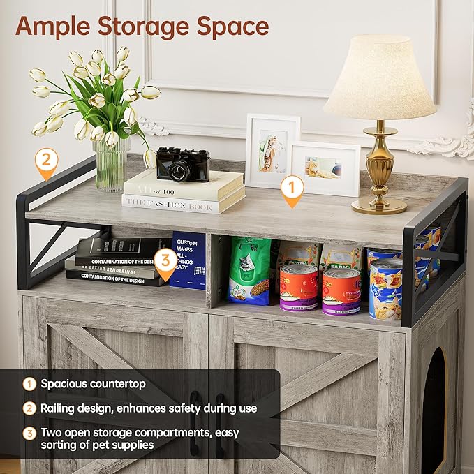 - Functional Storage & Secure Countertop: The railing-enhanced countertop prevents items from slipping off, adding safety and convenience, and includes 2 open storage compartments to keep pet supplies neatly organized.