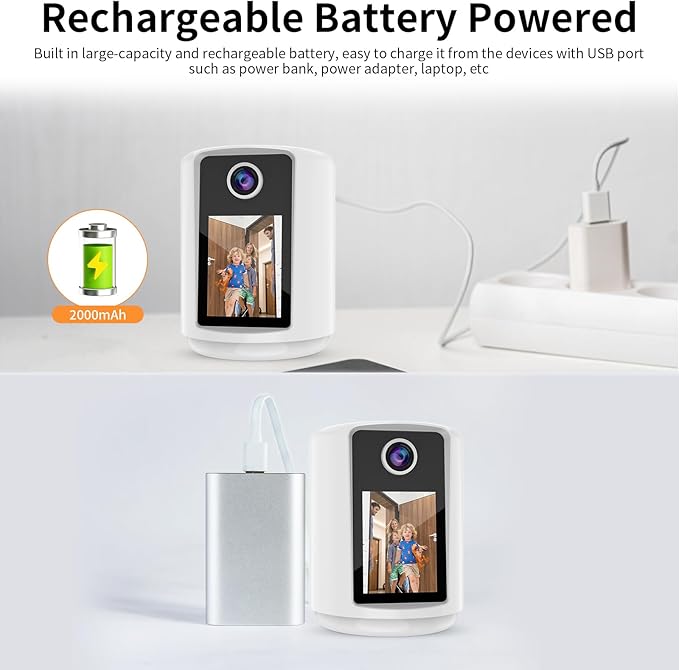 - 【Two-Way Video & Audio 】This indoor security camera features with a 2.4 inch high-definition display and two-way video calling,making it easier to achieve intimate interactions and communication ( Only works with 2.4G WiFi, not supports 5G )