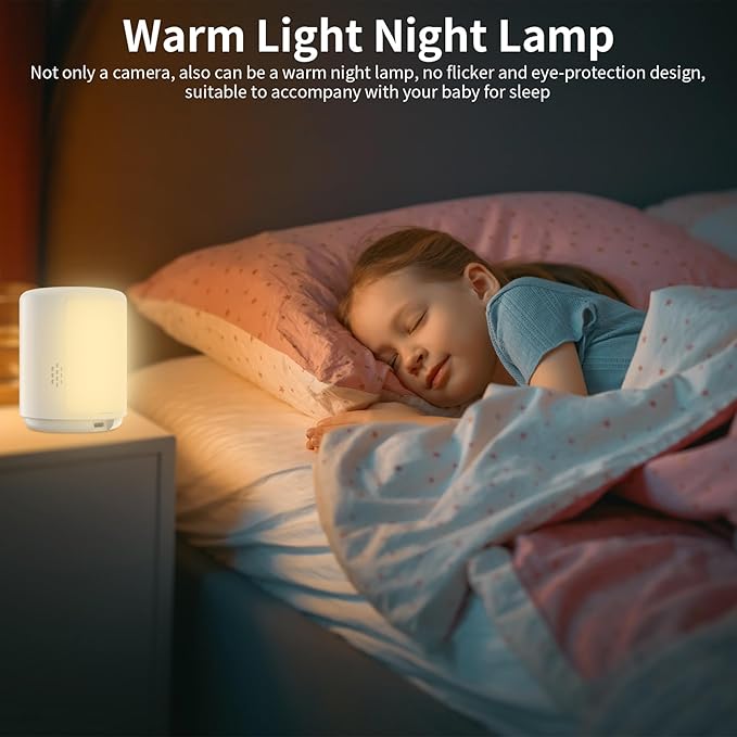 - 【Battery Powered & Warm-light Night Lamp】Built in 2000mAh rechargeable battery, wireless security camera can be easily charged via power cord,This baby monitor camera also can be used as warm night lamp to accompany for sleep