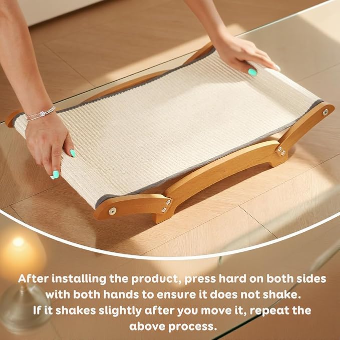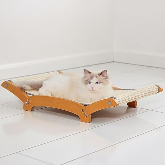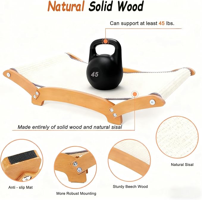 - 【 Built to Last Durable & Sturdy Cat Scratch Pad with Hammock 】:Crafted from premium beech wood coated with wood wax oil and 100% eco-friendly natural sisal, this cat lounger scratcher resists shredding and lasts longer than flimsy cardboard alternatives. Sturdy cat scratch pad with hammock for indoor cats lounger, sleep, scratch functions as a relaxing hammock and a durable scratching surface. After playtime, cats can curl up on the sturdy surface for a comfortable nap.