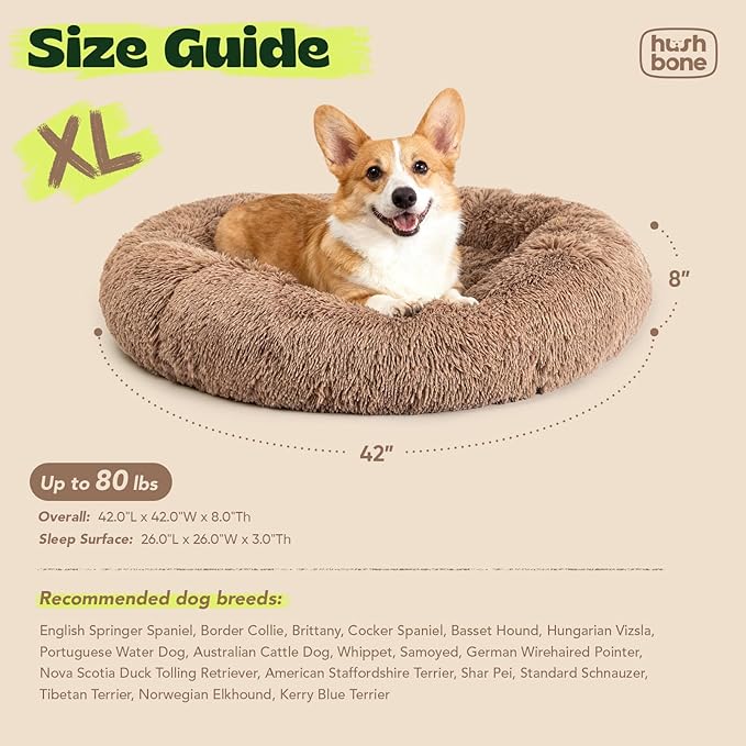 - Size Guide:Available in 4 Sizes:Large (36"x36" x8") pet bed weighing 50 lbs.X large (42"x42" x8") pet bed weighing 80 lbs; XX large (48"x48" x8.6") pet bed weighing 125 lbs;XXX large (54"x54" x8.6") pet bed weighing 135 lbs.This round bed with faux fur is very soft,warm and comfortable for your lovely friend.The circular design is more in line with the sleeping nature of pets.
