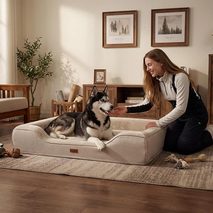 - Suitable for Large Dogs: This dog bed is sized 42.0 "X30.0" X9.0 "and has a sleeping surface of 34.0" x26.0 ", suitable for large dogs weighing up to 80 pounds. Especially suitable for large pets with arthritis or limited mobility. After unpacking, allow the dog bed to fluff up for 24-48 hours.