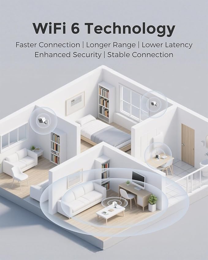 - ๐ Easy WiFi 6 Setup - Install your surveillance system in minutes with our quick-mount magnetic base design and WiFi 6 connectivity for superior range and stability, perfect for both indoor and outdoor monitoring.