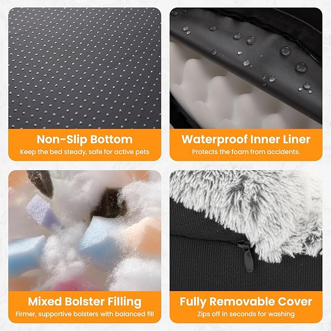 - Easy Care & Practical Details – Real life = shedding, drool, and spills. The removable, machine-washable cover plus waterproof inner liner protect the orthopedic foam; the non-slip bottom keeps the bed in place on wood or tile. Ideal for multi-dog homes and daily use.
