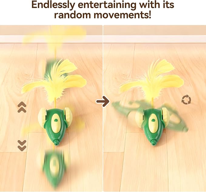 - 【Smart Interactive Play】 The automatic cat toy activates with a simple touch, runs for 3–4 minutes, then stops to save power. Motion patterns alternate between fast, slow, and unpredictable turns, giving cats the thrill of real prey.