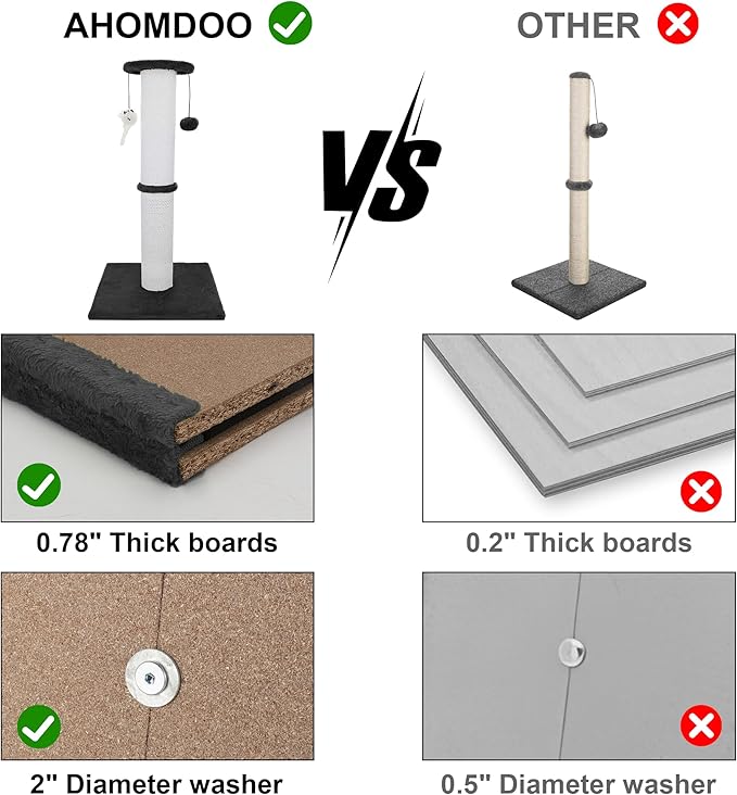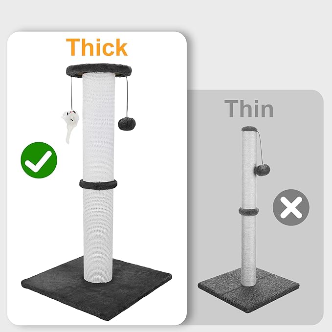 - Extra-Tall Design: Large scratching post often feature an extra-tall design, providing cats with an extended vertical surface to stretch and fully engage their muscles. 34inch height allows cats to indulge in their natural climbing instincts and provides them with a secure and satisfying scratching experience.