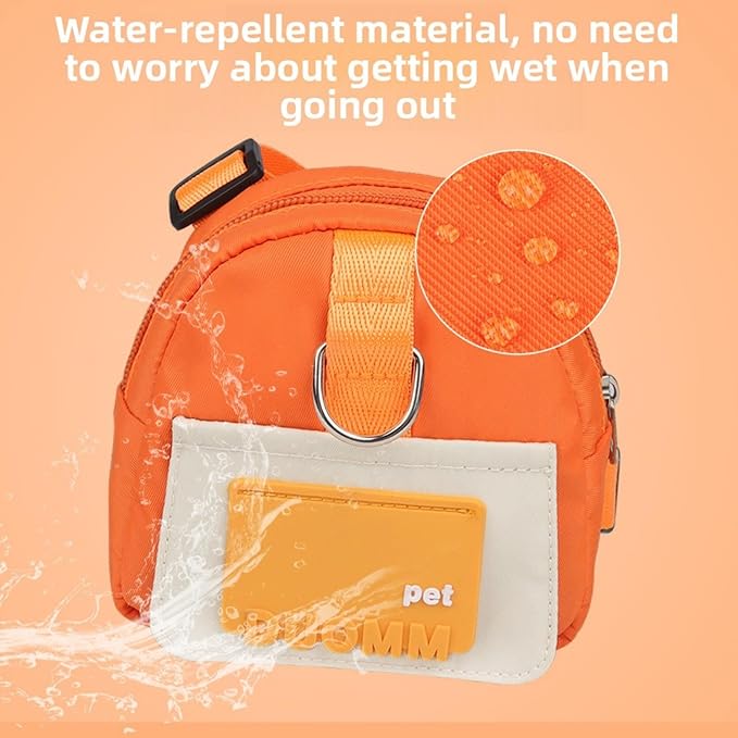 Dog Backpack Strap Leash,Dog Harness with Poop Bag Dispenser,Adjustable and Waterproof,Dog Hiking Backpack,Suitable for Travel and Daily Walks (Orange, M)