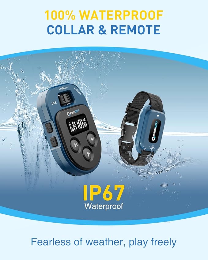 - 【IPX7 Waterproof & 3-Mode Night Light】This electronic collar is IPX7 waterproof-rated and features a 3-mode adjustable LED night light. Its advanced waterproof design ensures full functionality even in heavy rain, high humidity, or if accidentally submerged. The receiver is equipped with a multi-mode LED night light, offering three adjustable lighting modes to significantly improve your dog's visibility in low-light environments.